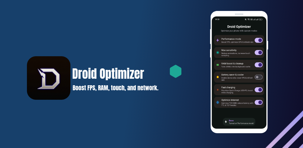 Droid Optimizer is a performance enhancement tool for Android 11+ powered by Shizuku permissions.